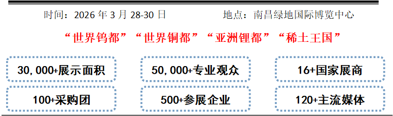 为了助力江西新时期矿山行业健康持续发展,加快推动新产品、新技术、新装备广泛应用。2026第三届中国(江西)国际绿色矿业博览会,将于2026年3月28-30日在南昌绿地国际博览中心举行。届时邀请政府领导、专家学者、企业高管、协会领导等一道解析行业发展形势,挖掘新动能,探寻发展思路,共同打造“创新、合作、发展、共赢”的全球矿业合作平台。