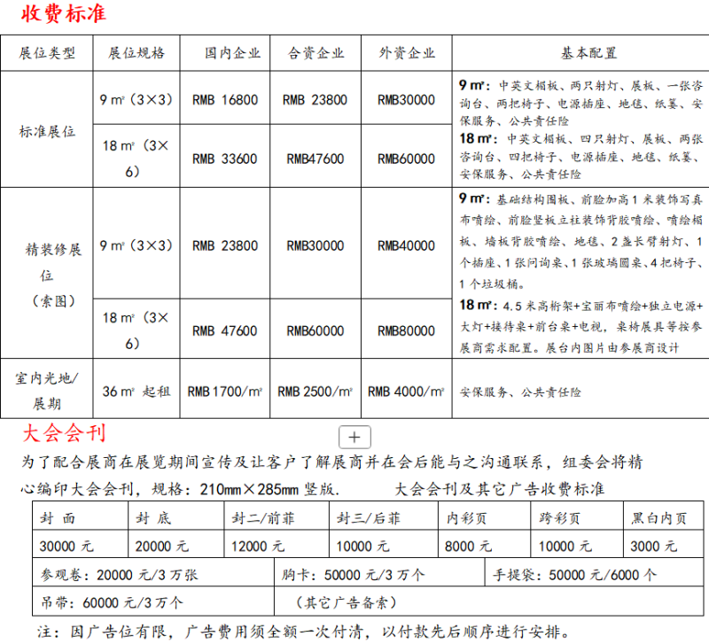 3、展位、广告等由组委会统一安排, “先申请、先付款、先分配”。协办单位可优先安排。