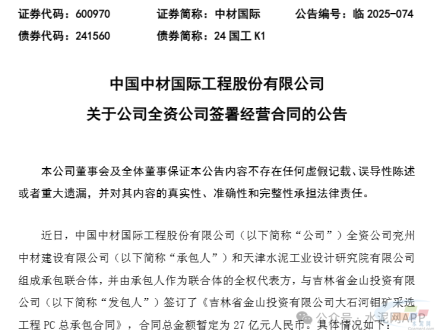 - 27亿元大单!中材国际全资公司联合签订大石河钼矿采选工程PC总承包合同