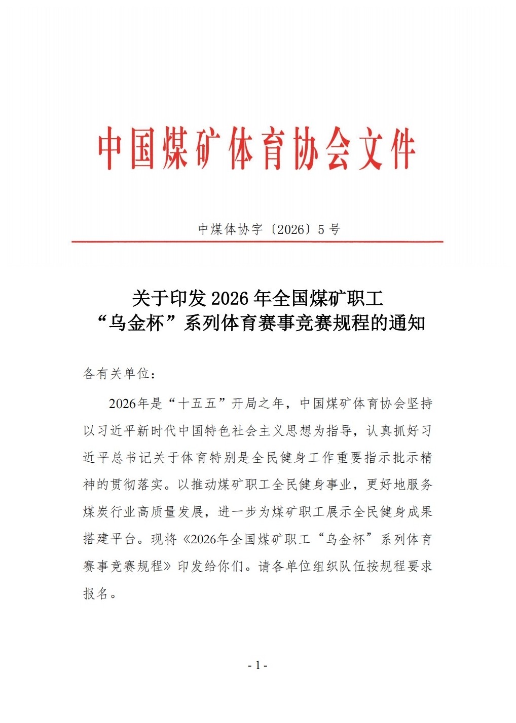 关于印发2026年全国煤矿职工“乌金杯”系列体育赛事竞赛规程的通知