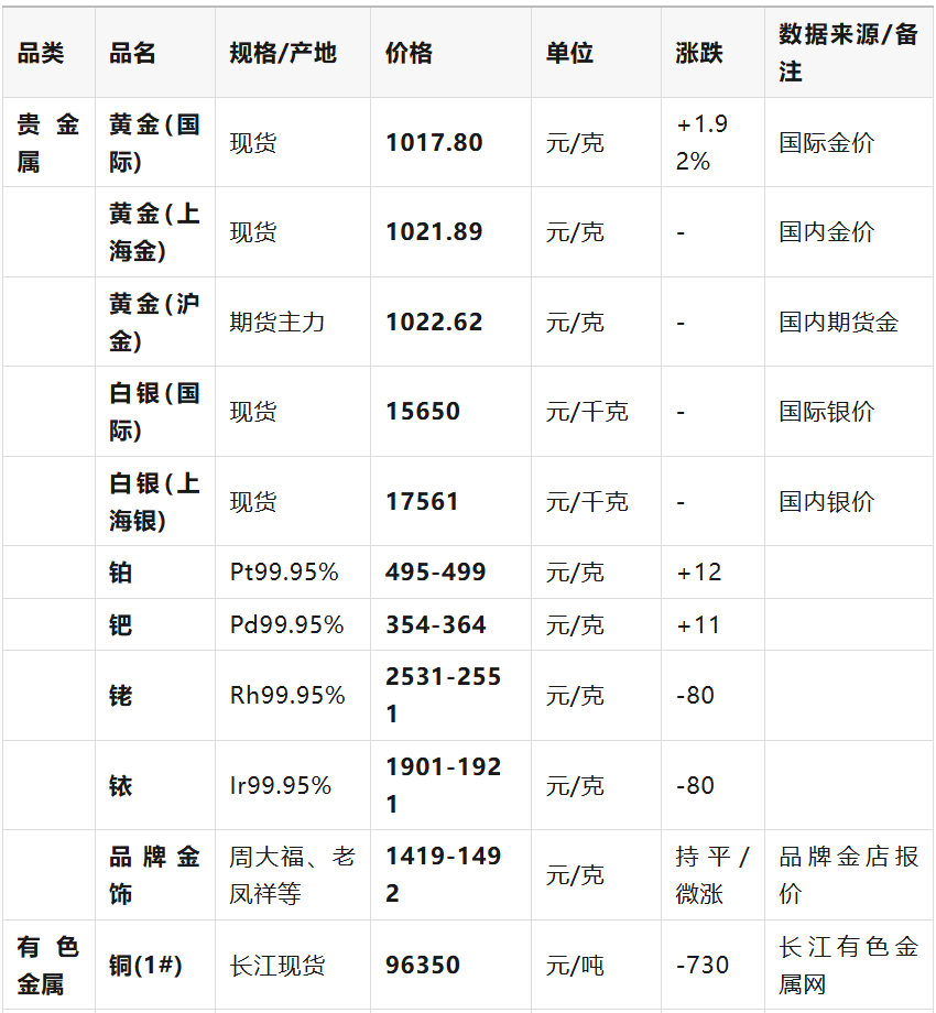 :如需查询更详细、更实时的价格,建议访问上海黄金交易所、伦敦金属交易所(LME)、上海期货交易所(SHFE)的官方网站,或大型的金属资讯网站(如长江有色金属网、中国有色网、金投网等)。