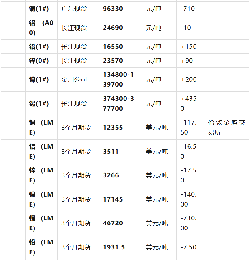 :金属市场价格实时变动,表格中的价格为特定时间点的参考价,不作为最终交易依据。 数据缺失