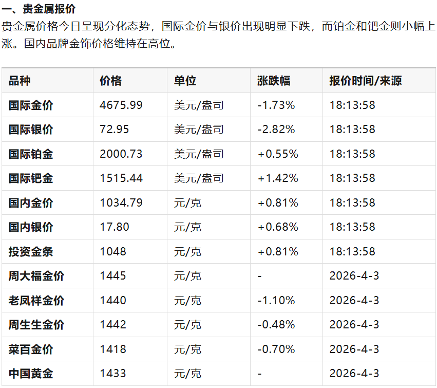 免责声明:以上价格信息仅供参考,不构成任何投资建议。市场价格波动剧烈,实际交易价格请以实时行情为准。建议您在进行交易前,通过权威的金融数据终端或咨询专业机构获取最新、最准确的报价。
