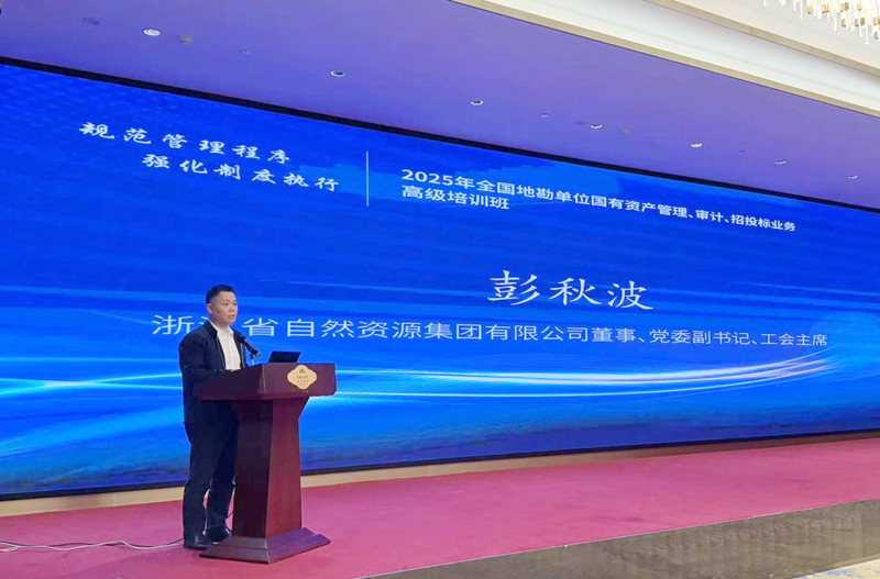 浙江省自然资源集团有限公司董事、党委副书记、工会主席彭秋波受汪晓亮董事长委托,谨代表浙江省自然资源集团有限公司,向远道而来的各位领导、专家以及全体学员,表示最热烈的欢迎和最诚挚的问候!向精心筹备本次培训的各相关单位和同仁,致以最衷心的感谢!他表示,当前我国高质量发展迈入纵深阶段,自然资源作为发展的重要物质基础,其保护与合理利用已成为关乎国计民生的战略议题。地勘行业作为自然资源领域的"先行者"和"探路者",肩负着资源保障、生态保护、空间治理的重要使命。而国有资产管理、审计监督、招投标规范这三项工作,正是支撑地勘单位健康发展的"三大支柱"——国有资产是地勘单位履职尽责的物质保障,审计监督是防范风险的"防火墙",规范招投标则是维护公平公正市场秩序的"生命线"。做好这三项工作,不仅是地勘单位落实国有资产监管要求的政治责任,更是推动地勘行业提质增效、实现高质量发展的必由之路。