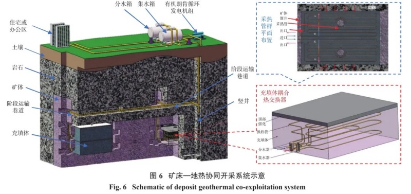 (2)“向地球深部进军”是我国必须解决的战略科技问题,随着浅部资源的枯竭,深部开采将成为常态,深部开采面临的高地温问题,使劳动效率大幅下降和生产事故大量增加,同时还会降低井下设备的工作性能。地热是一种清洁能源,因此可将矿山充填、深井降温与地热开发有机结合,从而拓展充填的功能,大幅降低深井降温与充填成本,革新充填采矿技术,实现矿山绿色、安全、高效开采。