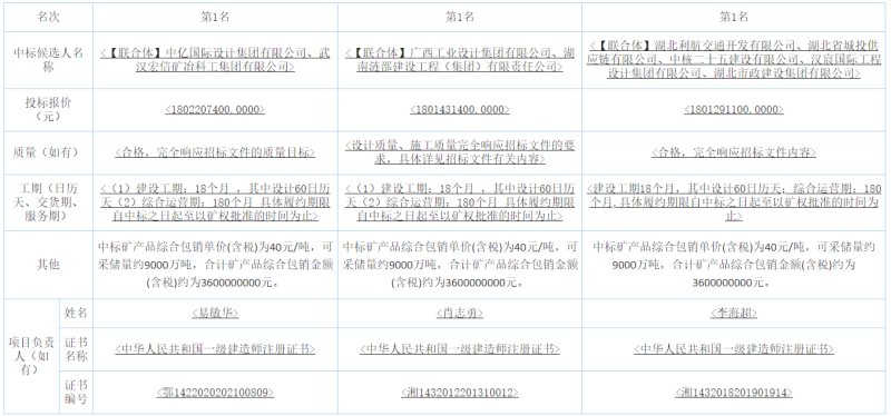 根据招标公告,该项目合同估算价1802486600元,建设工期18个月,其中设计60日历天;综合运营期180个月,具体履约期限自中标之日起至以矿权批准的时间为止。矿山建设规模包括新建生活、加工区占地面积约119.63亩,主要建设内容为办公楼、职工宿舍、石料破碎生产设备;新建排土场占地面积约105.9亩。