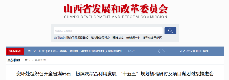 为加快推动我省煤矸石、粉煤灰综合利用发展,近日,省发展改革委资环处分别组织省属煤炭、煤电企业和各市发展改革委召开两场全省煤矸石、粉煤灰综合利用发展“十五五”规划初稿研讨及项目谋划对接推进会,邀请有关省属投资企业、省内外有关技术单位负责同志参加会议,省国资委相关处室负责同志参会并作工作要求。