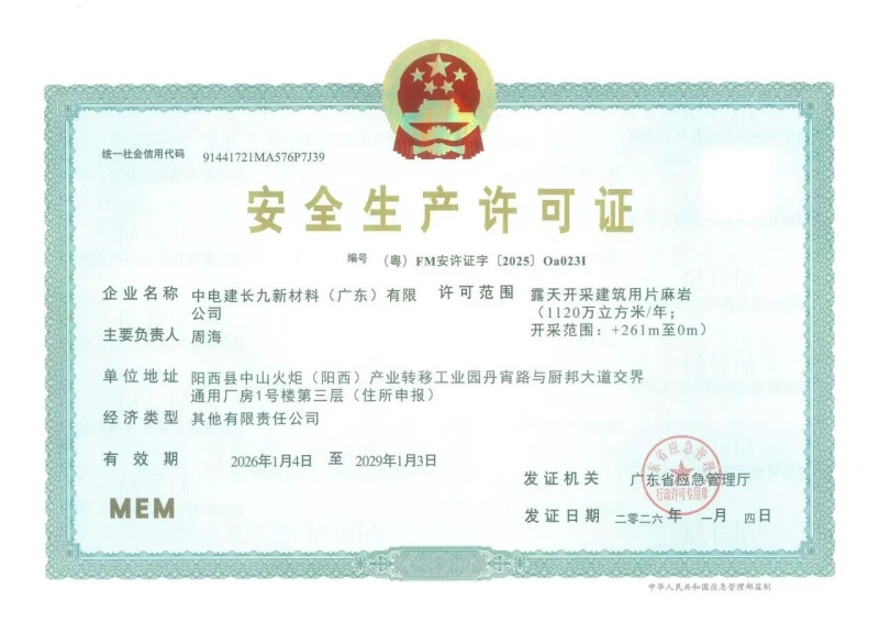 近日,中电建广东长九公司正式取得安全生产许可证!标志着公司安全生产标准化与合规化管理全面达标,具备了正式投产运行的重要条件,为公司高质量发展奠定了坚实的安全基础。