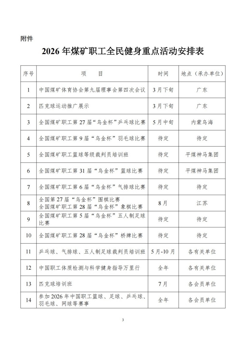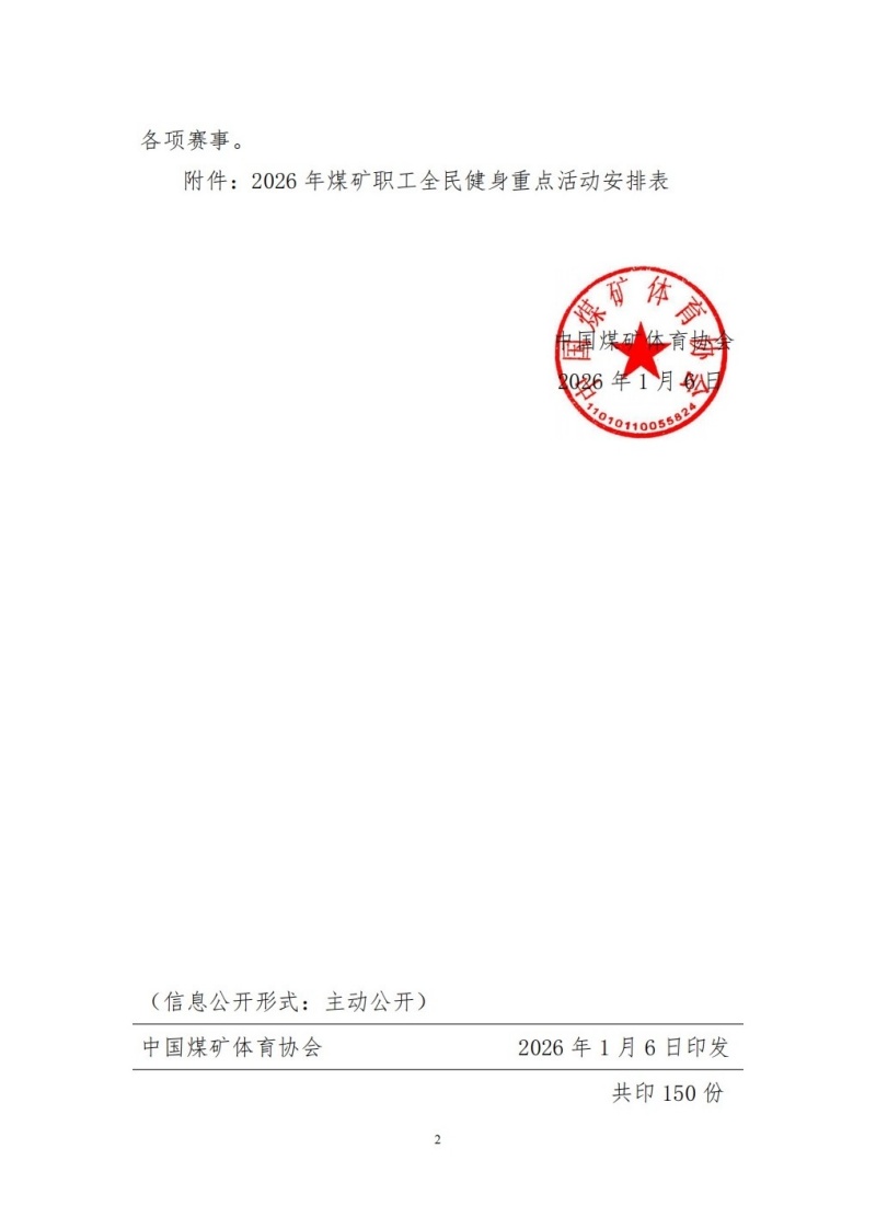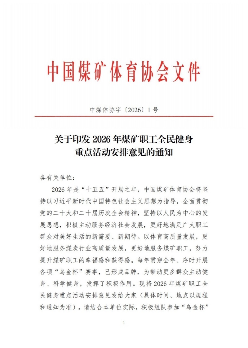 关于印发2026年煤矿职工全民健身重点活动安排意见的通知