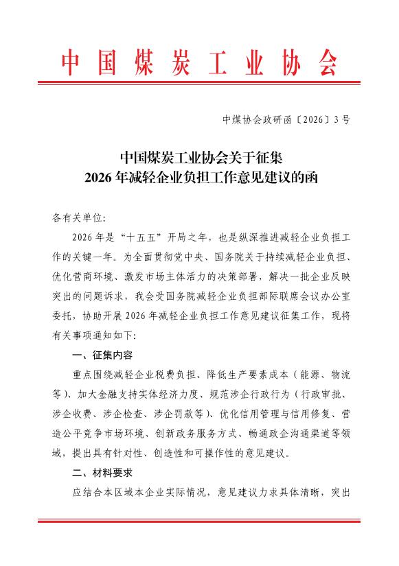 关于征集2026年减轻企业负担工作意见建议的函