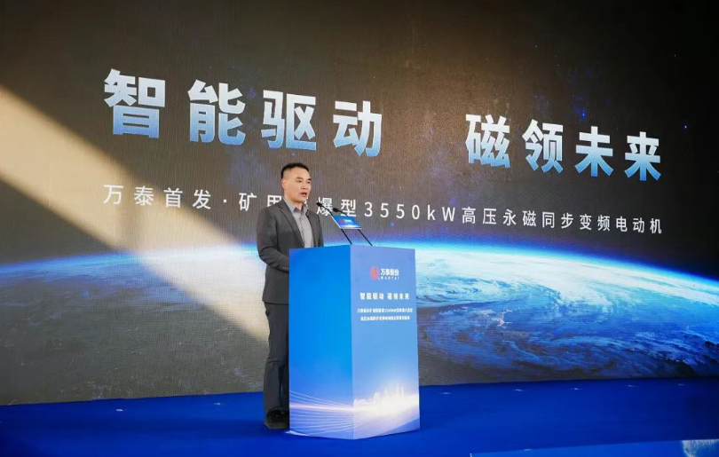 淮北矿业集团副总经理聂政作为企业代表发言,分享了与万泰股份的深厚合作渊源。他表示,传统“异步电机+减速机”驱动模式长期制约矿山主运输系统高效运行,万泰这款新品以3550kW额定功率、10kV高压设计填补国内空白,低速大扭矩特性完美适配重载启动需求,超20%的节能效率为绿色矿山建设赋能加码,期待以此次新品发布为契机,深化产学研用协同创新,推动高端装备尽快落地转化为安全效益与效率效益。
