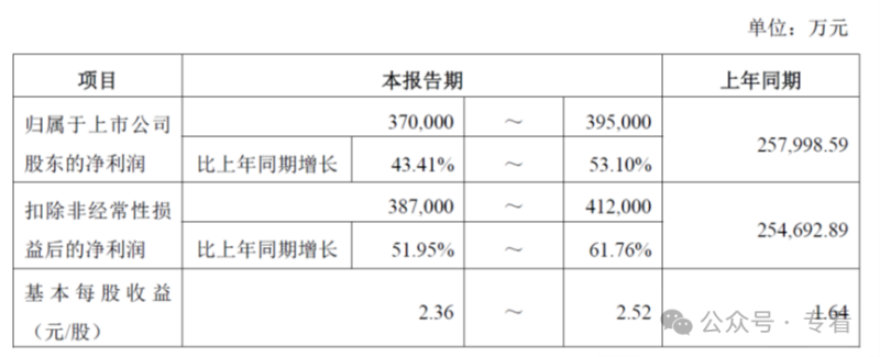 藏格矿业的业绩预告也公布了,2025年公司归母净利润37亿元~39.5亿元,同比增加43.41%~53.10%;扣非后归母净利润38.7亿元~41.2亿元,同比增加51.95%~61.76%。