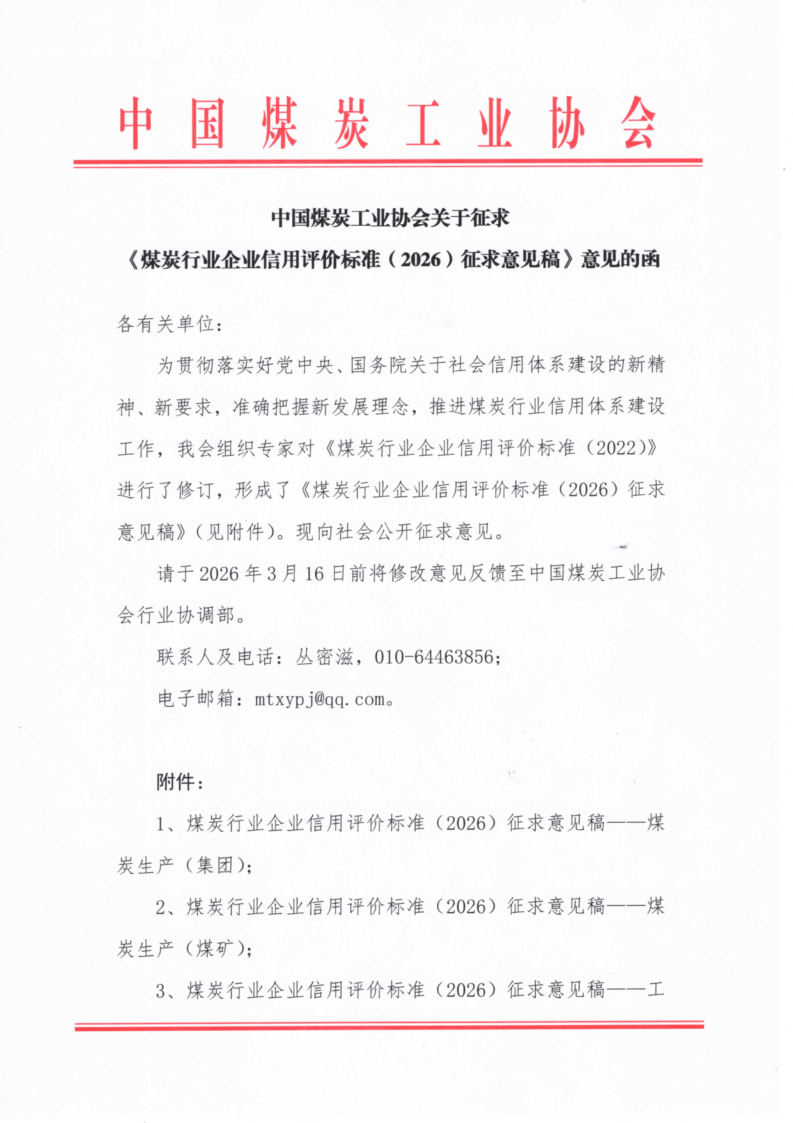 3、煤炭行业企业信用评价标准(2026)征求意见稿——工程建设;