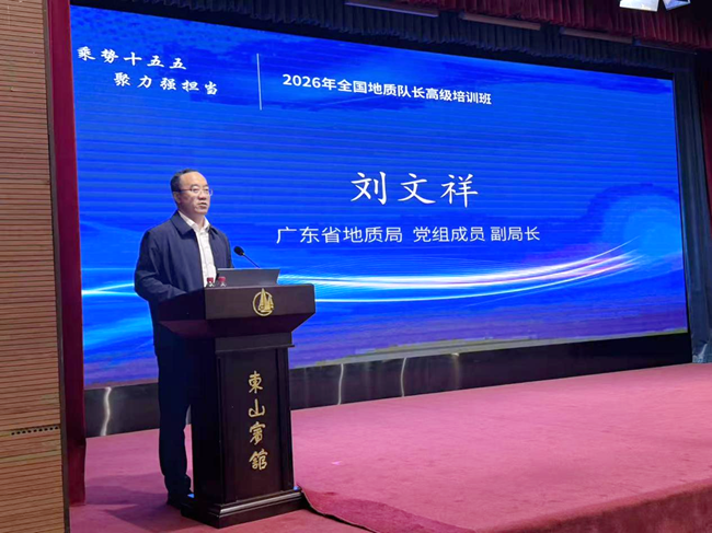 为深入贯彻2026年全国自然资源工作会议精神,以新质生产力推动行业转型升级,持续推进战略性矿产资源增储上产,充分发挥地勘单位在新一轮找矿突破战略行动中的骨干作用和中坚力量,进一步丰富提高地质队长履职能力,支持经济大省高质量发展、勇挑大梁。由中国矿业联合会主办的2026年全国地质队长高级培训班于3月7日—10日在广州隆重举办。广东省地质局党组成员、副局长刘文祥出席开班仪式并致辞。中国矿业联合会秘书长车长波、广东省地质局党组成员、副局长刘文祥、内蒙古矿业联合会会长葛桂平、中国矿业联合会会长助理孙宇分别主持培训班。