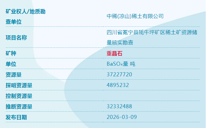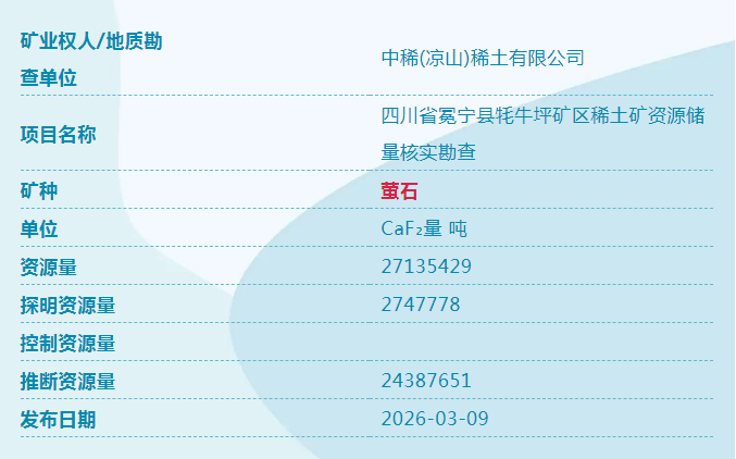 日前从自然资源部获悉,我国新一轮找矿突破战略行动再添新成果,四川冕宁、甘肃宕昌发现固体矿产,分别是稀土、萤石、重晶石、锑。