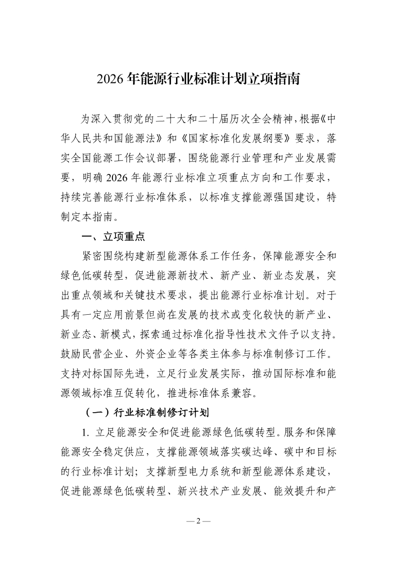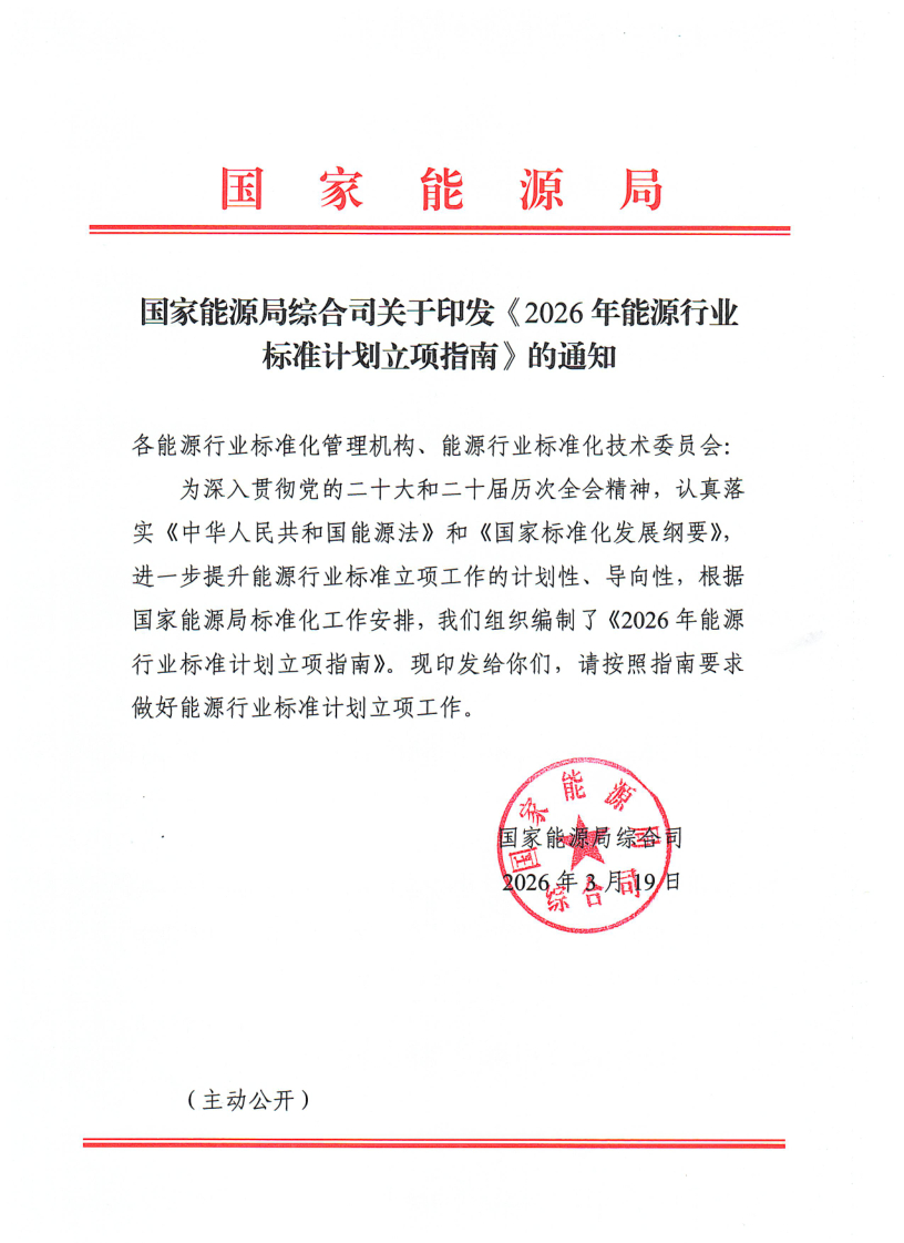 国家能源局印发《2026年能源行业标准计划立项指南》:涉及煤炭领域7个专业方向