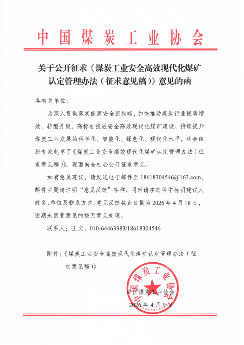关于公开征求《煤炭工业安全高效现代化煤矿认定管理办法(征求意见稿)》意见的函