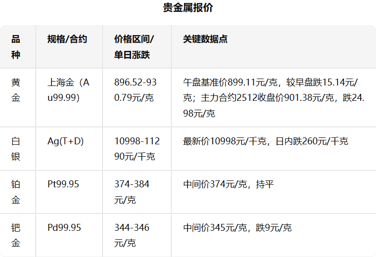 数据来源:上海黄金交易所、伦敦金属交易所(LME)、中国有色网、金投网等权威平台,均为2025年10月28日实时行情。