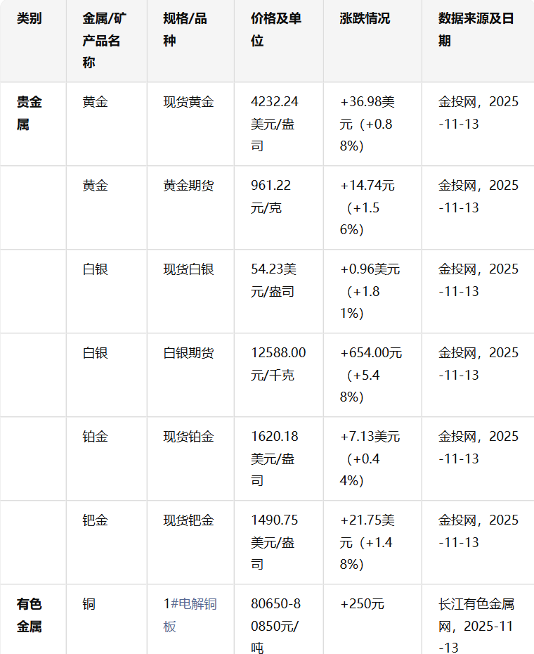 :信息综合自金投网、长江有色金属网、搜狐网、新浪财经、生意社等权威平台,确保数据实时性。