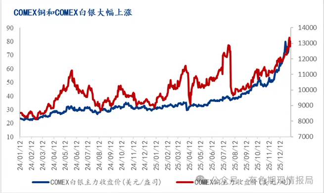 在铜、白银被纳入关键矿产清单后,均出现一轮大涨行情。COMEX铜和白银在9月9日被纳入关键矿产清单后,截至2026年1月9日,较9月9日收盘分别上涨65.5%和92.9%。