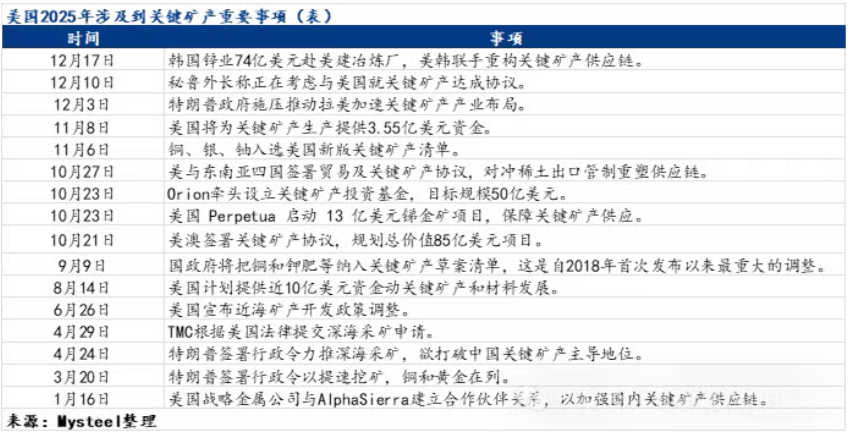 美2025关键矿产清单