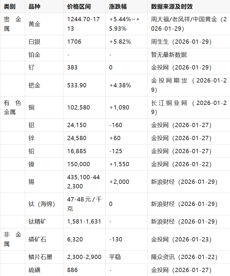 科矿|1月26日金属、矿产品及非金属现货行情报价单
