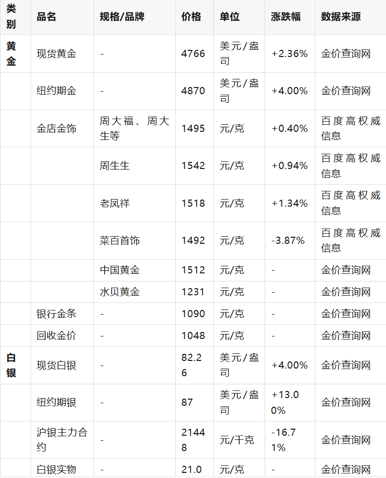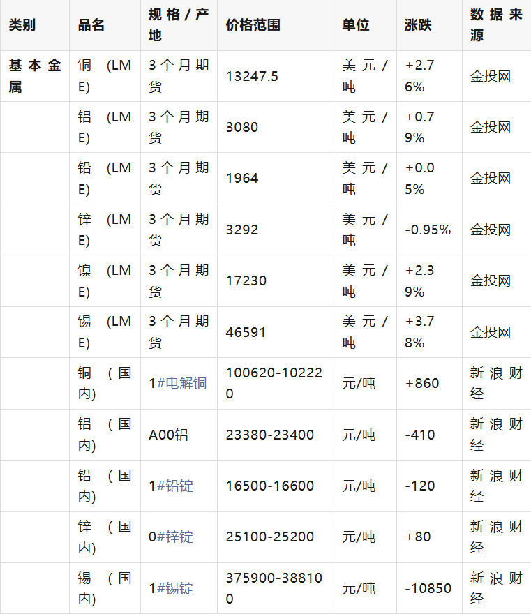 以上表格整合了多个权威网站的信息,但仍可能存在数据不全或延迟的情况。对于具体交易,建议您通过上海黄金交易所、伦敦金属交易所(LME)、各大期货交易所官网或您的交易软件查询实时、精确的行情数据。 投资风险: