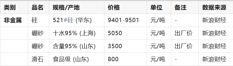 四、非金属报价表 (2026年2月3日)