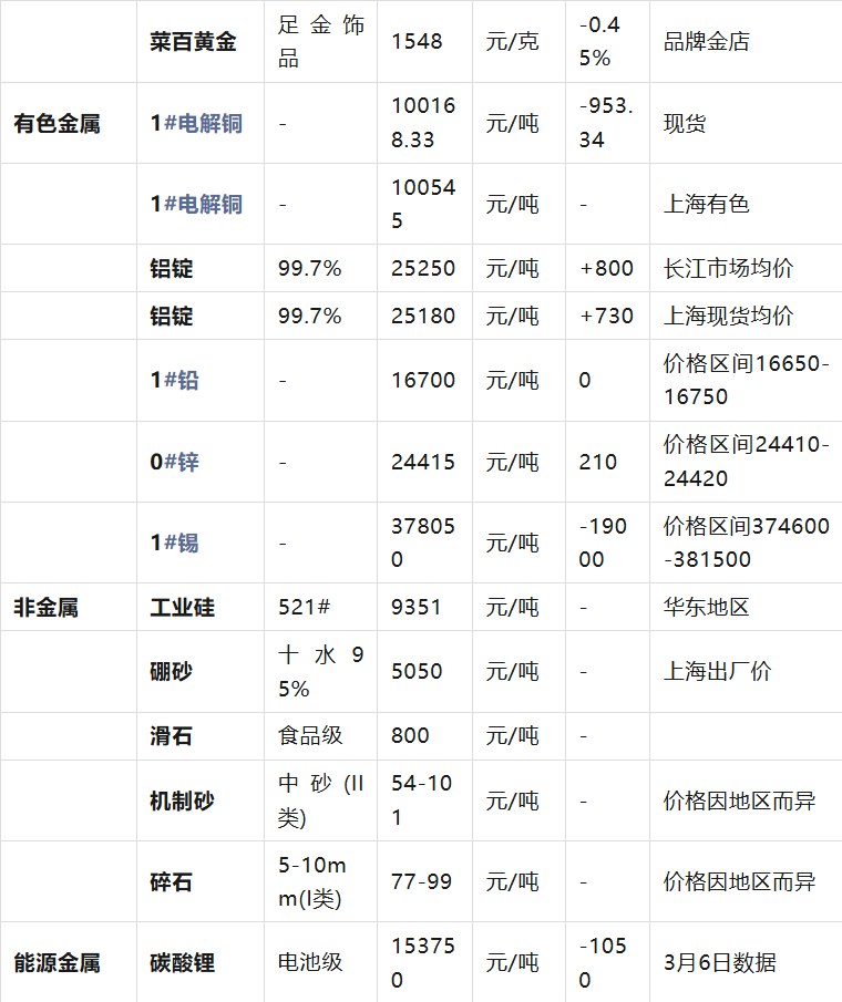 :以上数据综合参考了上海金投网、世铝网、新浪财经、同花顺财经、我的钢铁网、东方财富网等权威财经网站和行业门户。