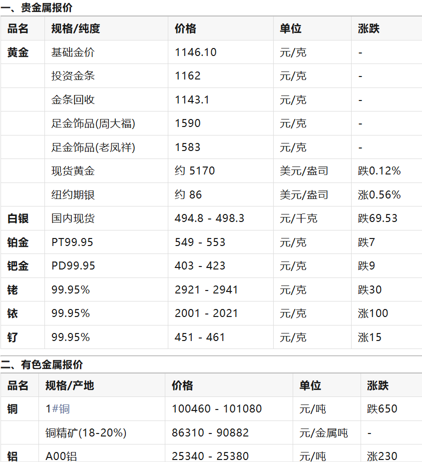 金属市场价格实时变动,以下数据截至今日17:00左右,仅供参考,实际交易价格以实时行情为准。