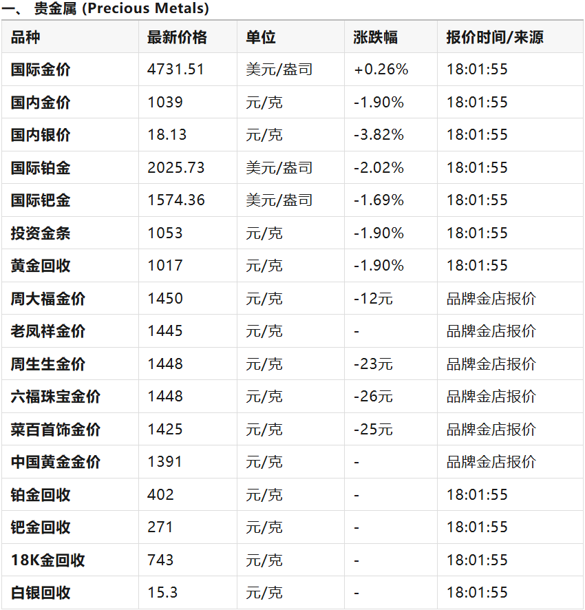 科矿|2026年4月1日全球及中国矿产行情分析报告:风暴眼中的价值重估