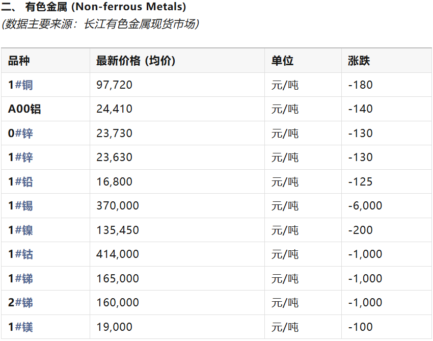 科矿|4月16日金属、矿产品及非金属现货行情报价单