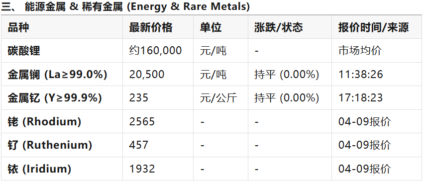 科矿|2026年4月9日全球及中国矿产行情分析报告:地缘风暴下的供需博弈