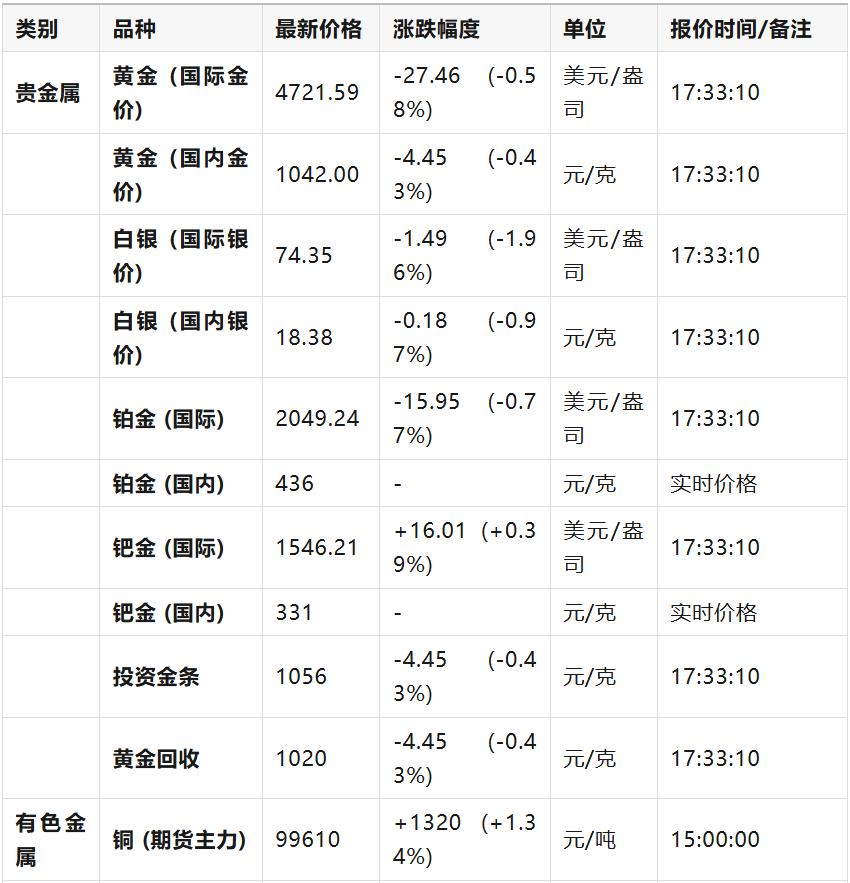 贵金属价格