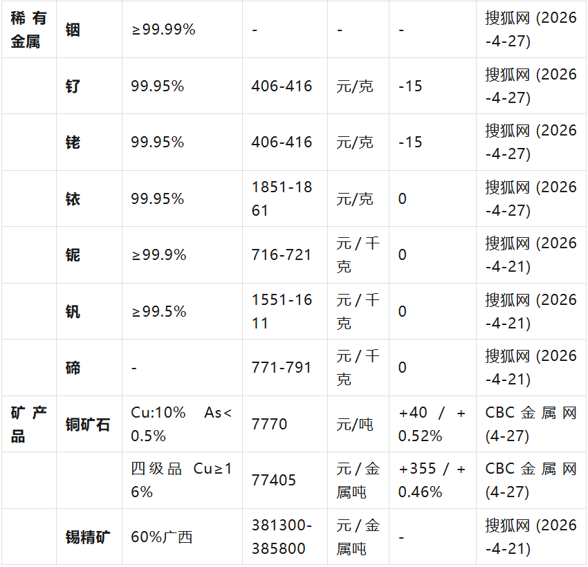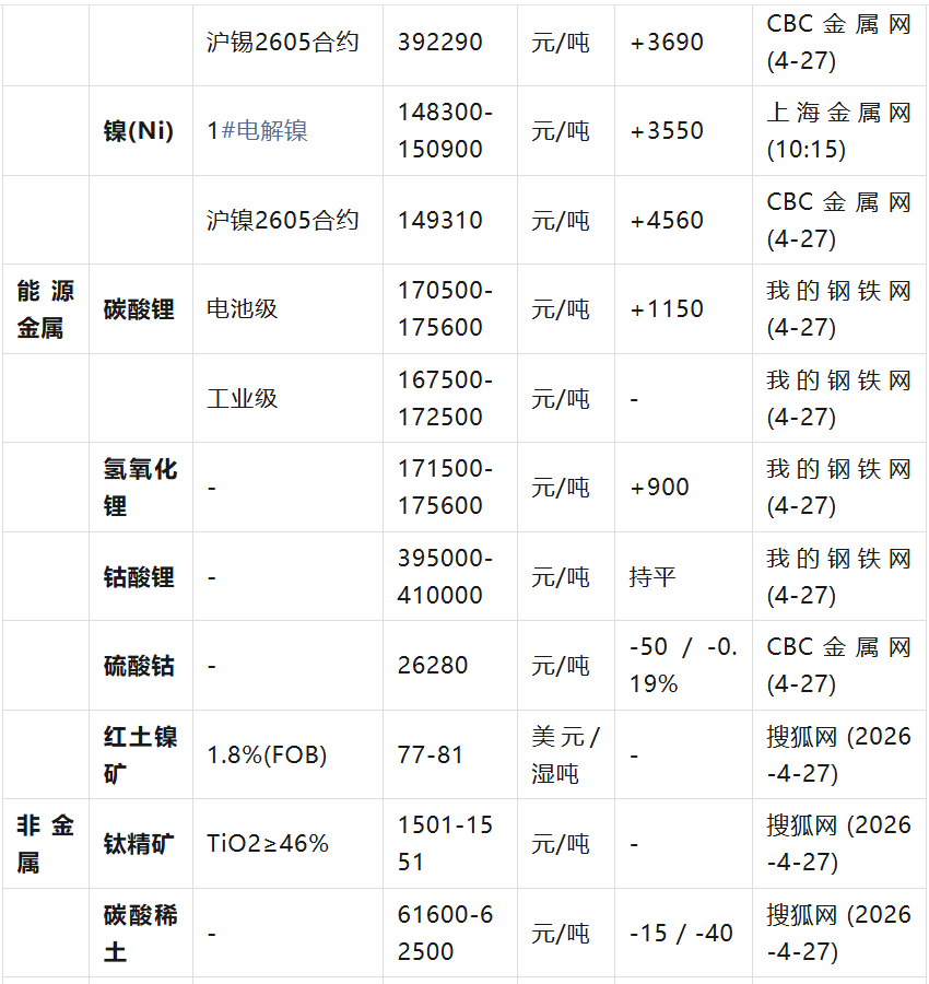 科矿|2026年4月27日全球及中国矿产行情分析报告:地壳裂变下的资源重估与冰火博弈